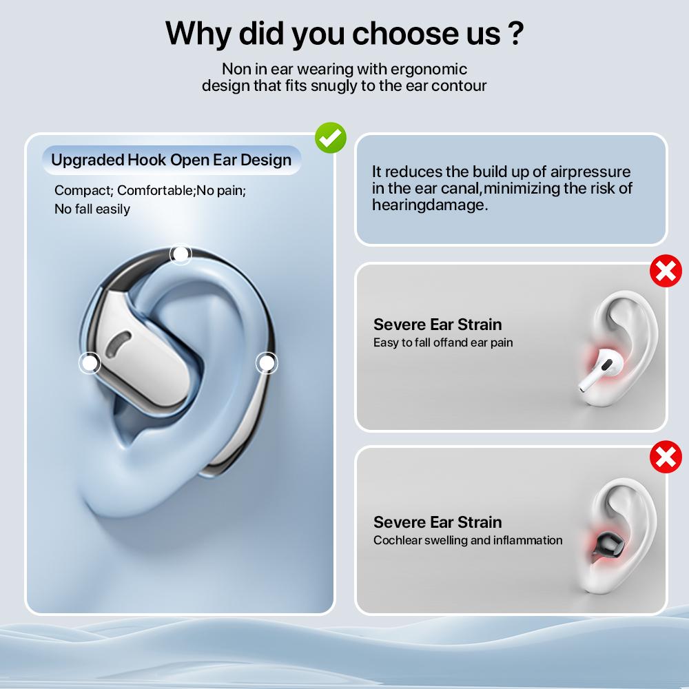 Comfortable to wear: The headset adopts an ergonomic ear-hanging design to ensure comfortable wearing, even for long time use without pressure